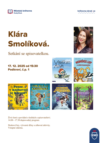 V rámci akce 🐚 Jarmark pro všechny lovce perel vás srdečně zveme na setkání s oblíbenou spisovatelkou Klárou Smolíkovou. Ve středu od 15:30 se můžete těšit na povídání plné příběhů a inspirace.
