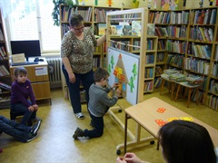 Začali jsme veršovanou pohádkou O perníkové chaloupce z Hrubínova Špalíčku, potom děti vyzdobily papírovými „perníčky“ chaloupku na magnetické tabuli. Následoval poučný příběh O kohoutkovi a slepičce, po něm si děti zahrály pexeso s obrázky z této pohádky a jako poslední jsme si připomněli pohádku O Smolíčkovi. Děti ještě přiřazovaly správné obrázky do správných pohádek a doplňovaly rýmy do obrázkového čtení.