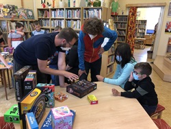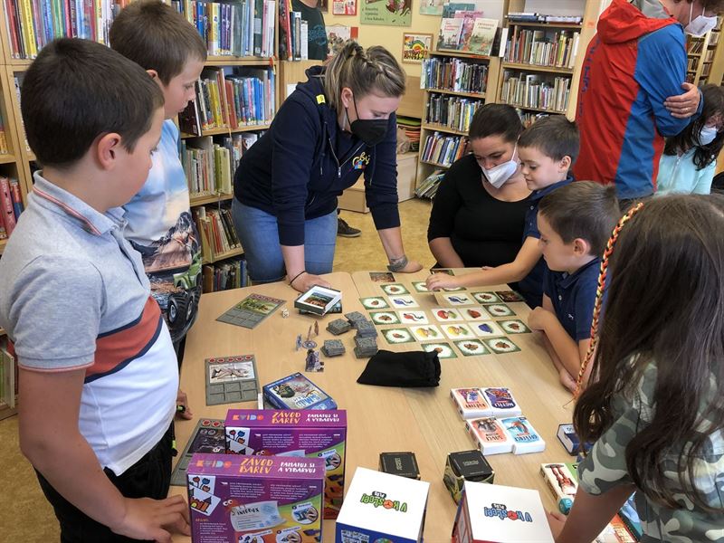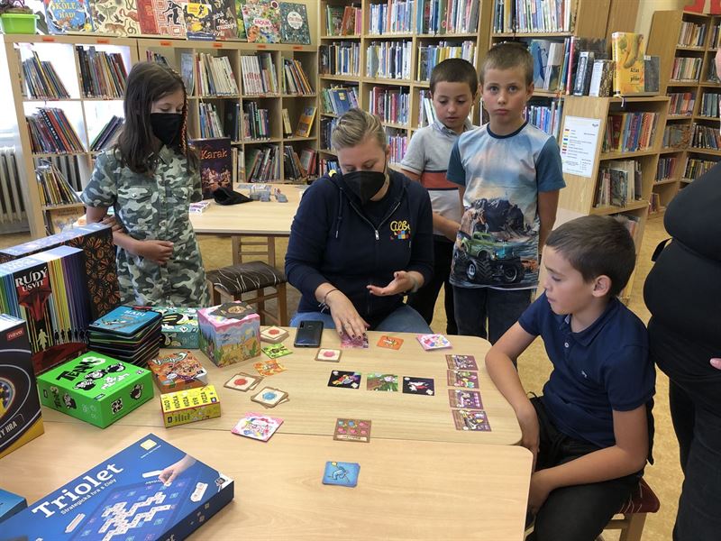Součástí celodenního programu byla také odpolední návštěva zástupců firmy Albi, kteří k nám do knihovny přivezli na ukázku a k vyzkoušení řadu osvědčených her i řadu novinek.
