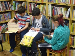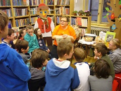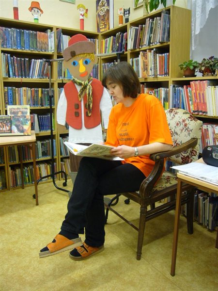 Po Pohádkovém odpoledni následoval ještě podvečerní program pro třídu 4. B paní učitelky Tůmové. Po krátkém seznámení s životem a dílem pana Drdy jsme dětem pustili písničku, která byla složená speciálně pro letošní Noc s Andersenem a skrývala názvy sedmi Drdových pohádek. Český Honza potom všechny pozval na putování po celé knihovně, každý dostal svou hrací kartu a za splnění tří náročných úkolů na třech stanovištích mohl získat tři razítka. Skládání rozstříhaného textu ze známých pohádkových příběhů a tvoření nových slov ze slova ANDERSEN děti celkem bez problémů zvládly. Pro většinu z nich se ale velkým oříškem stal kvíz, kde musely vyluštit dvě doplňovačky, v jejichž tajence se skrývala jména postav z Drdových pohádek, a ještě v šesti větách najít jména šesti českých spisovatelů.