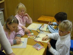 Tématem druhé části besedy bylo Čarování s knihami, některé děti kreslily obrázky s motivem pohádkových čarodějů a čarodějnic, ostatní luštily čarodějnickou křížovku. Na závěr jsem si přečetli jeden z příběhů Malé čarodějnice a jejího havrana Abraxase a prožili jsme jedno dobrodružství s moderními čarodějnicemi Eulálií a Zevlínou.