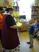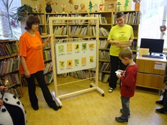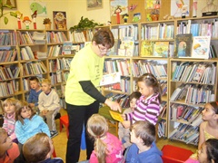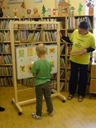 Po krátkém úvodu, kdy jsme všechny návštěvníky přivítali v našem Písmenkovém království, usedla na svůj trůn i Písmenková královna, aby mohla sledovat, jak budou malí školáci plnit připravené úkoly a tím předvedou své znalosti písmenek a čtení. Nejprve děti přiřazovaly na magnetické tabuli k obrázkům známých pohádkových postaviček jejich správné pojmenování. V rámci druhého úkolu jsme luštili veršované hádanky, možné odpovědi si děti musely samy přečíst a pak vybrat tu správnou. Do třetice jsme hledali jména pohádkových postaviček, která začínají na určité písmenko, a nakonec nám děti předvedly ještě čtení neznámého textu z připravené knížky. Svými skvělými výkony nás všichni prvňáčci přesvědčili, že opravdu umí číst a zaslouží si ocenění Malý čtenář.
