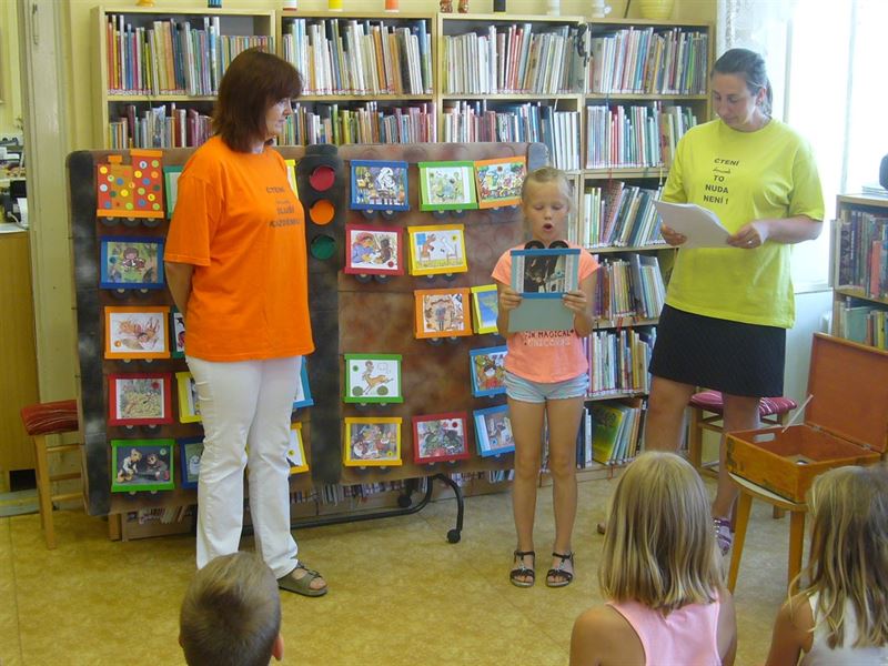 Školní rok jsme už podvanácté zakončili slavnostním pasováním žáčků 1. tříd na Malé čtenáře. Ve čtvrtek 20. června a v pondělí 24. června se naším knihovnickým pohádkovým vláčkem projelo 123 prvňáčků ZŠ Tyršova, ZŠ Žitomířská a ZŠ Přistoupim.