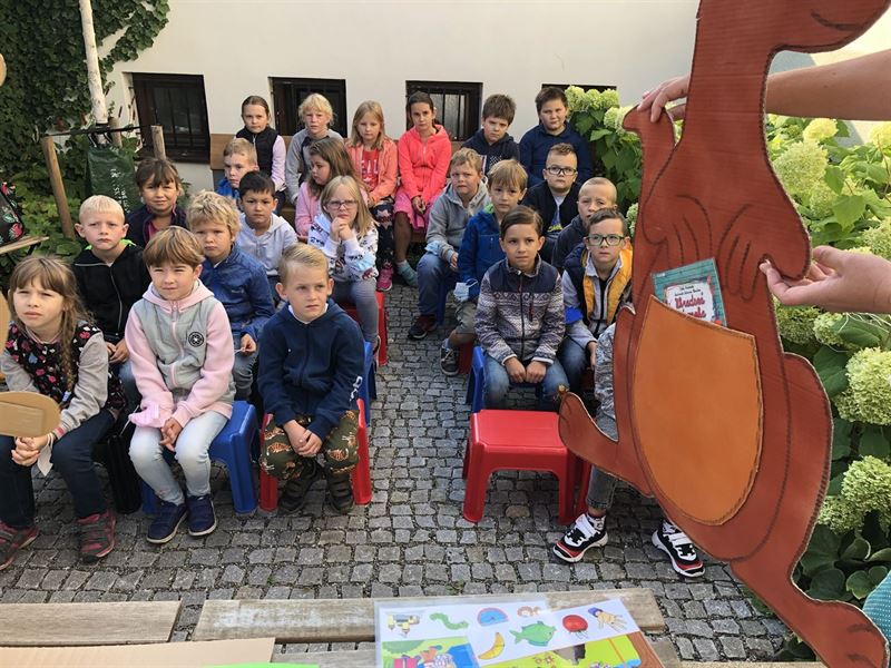 V první polovině září byly na dvorku knihovny pasovány na čtenáře 3 třídy druháčků ze ZŠ Žitomířská a 1 třída ze ZŠ Přistoupim.
